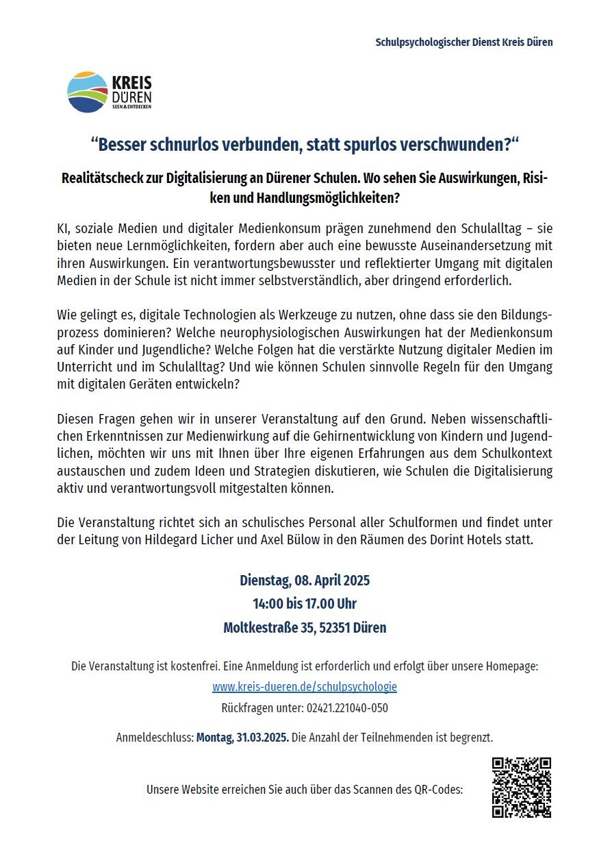 “Besser schnurlos verbunden, statt spurlos verschwunden?“ Realitätscheck zur Digitalisierung an Dürener Schulen.