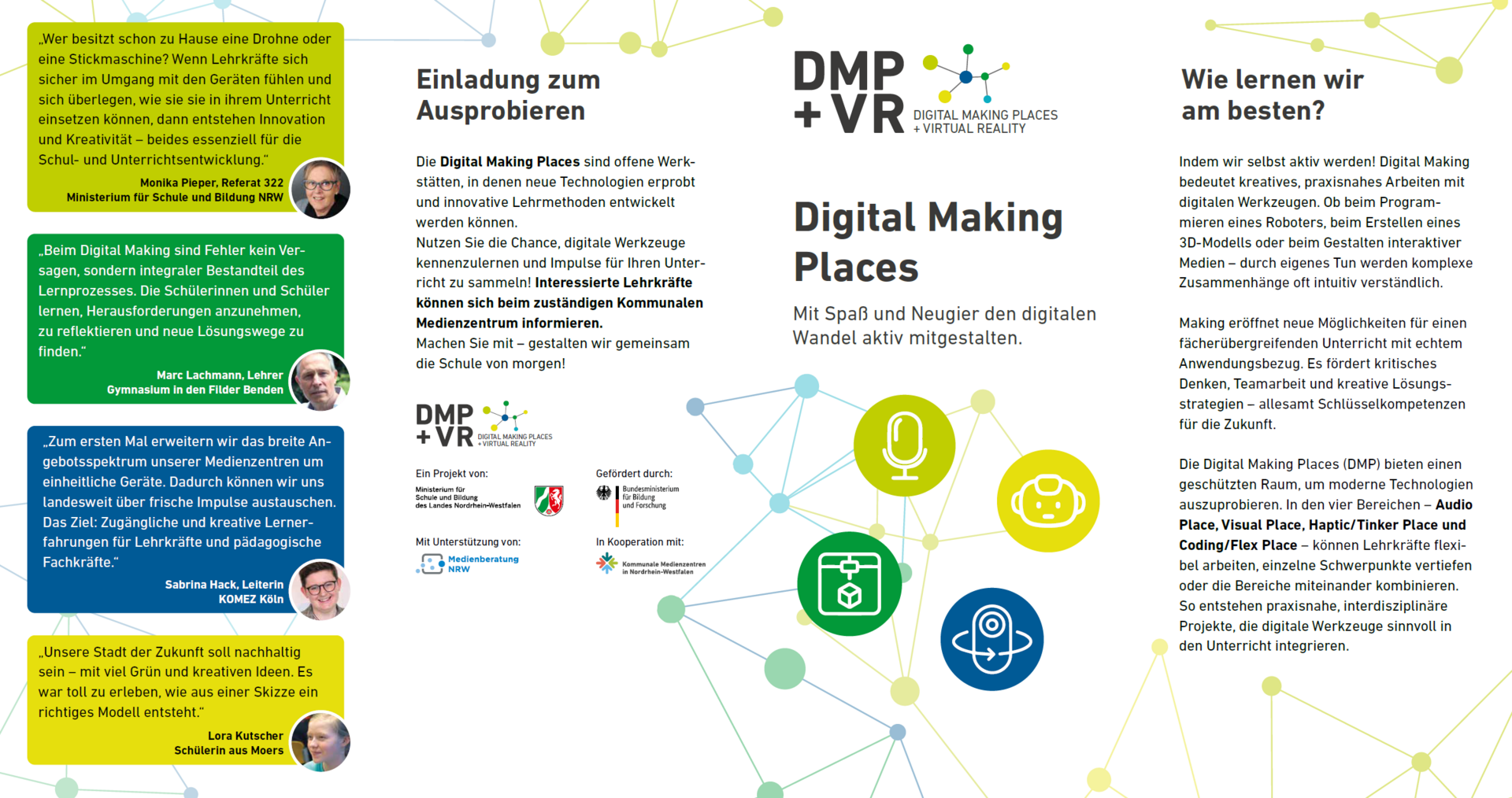 Die in enger Kooperation mit der Schulaufsicht und der Medienberatung eingerichtete digitale Plattform "Netzwerk Digitalisierung an Schulen im Kreis Düren" ermöglicht zu den bisherigen Angeboten auch den Austausch und das regelmäßige Arbeiten rund um das „Digital Making Places“.