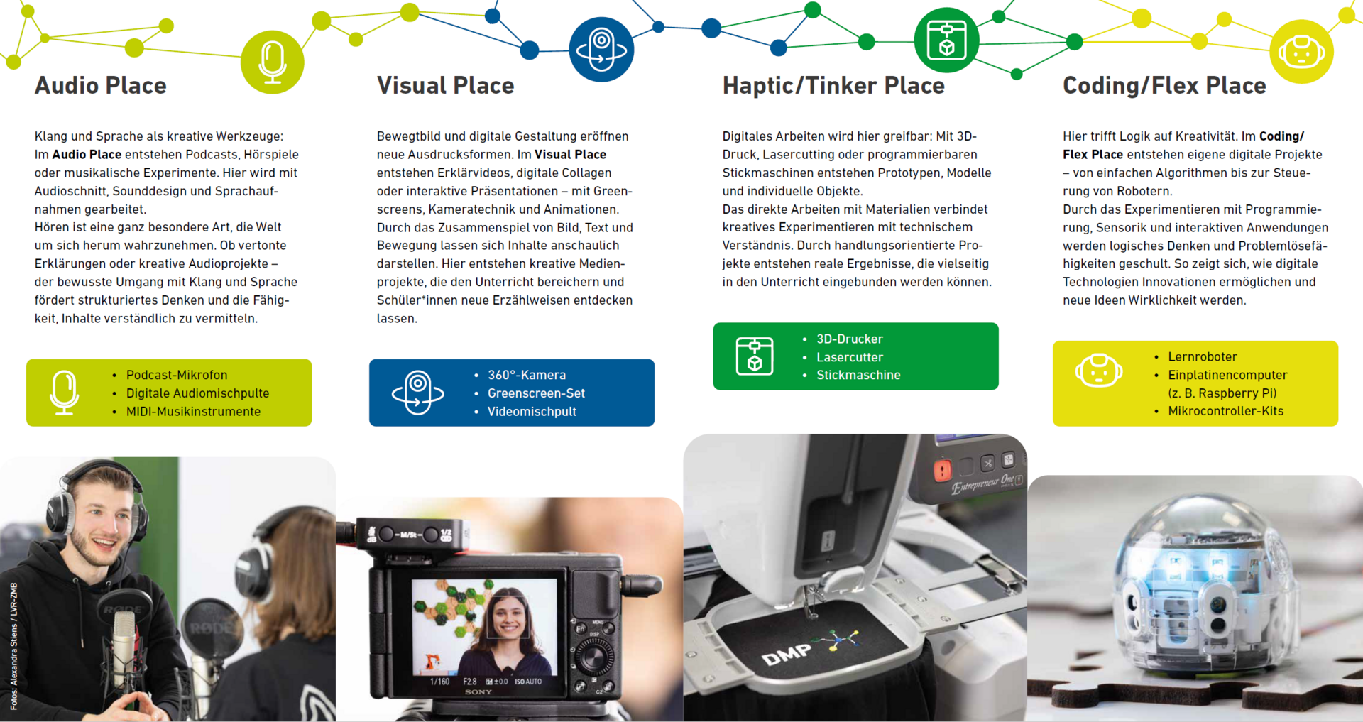 Die „Digital Making Places“ bieten in vier spezialisierten Kreativbereichen vielfältige Möglichkeiten zum kreativen „Making“: