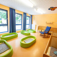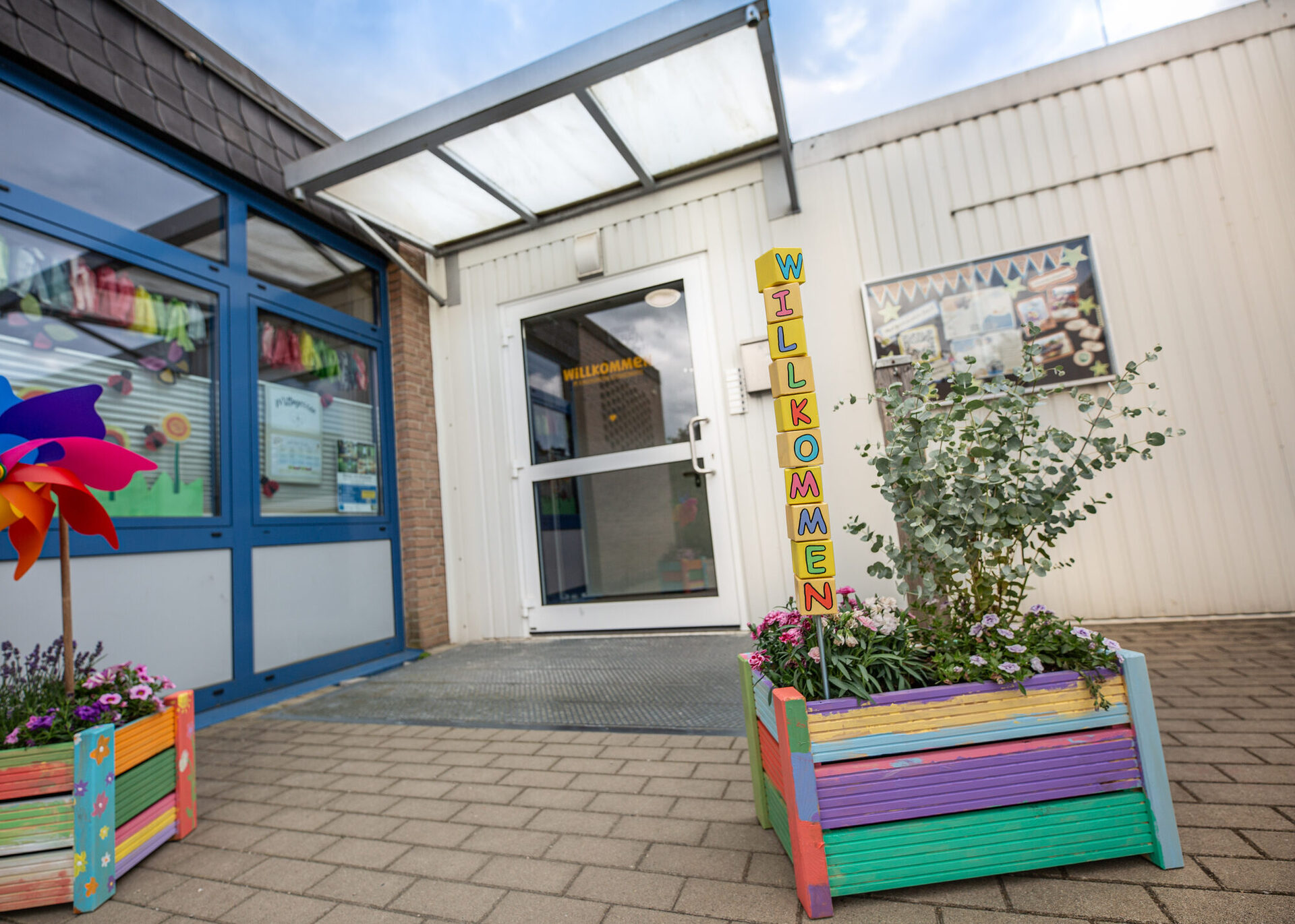 Die 6-gruppige Kindertageseinrichtung liegt im Nordosten der Stadt Jülich und ist in ca. 15 Gehminuten vom Stadtzentrum erreichbar. Es werden insgesamt 104 Kinder im Alter zwischen 4 Monaten und 6 Jahren betreut.