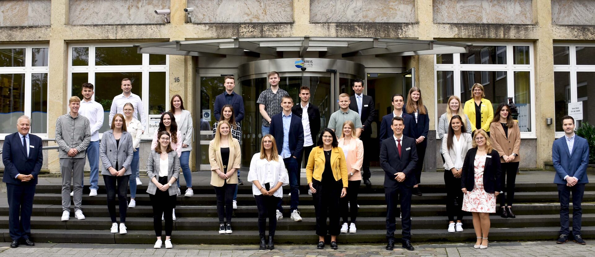 Bereits im August hat der Großteil der Nachwuchskräfte ihren Dienst im Kreis Düren begonnen, im September sind neun weitere hinzugekommen. Unter den neuen Mitarbeiterinnen und Mitarbeitern absolvieren einige die Ausbildung zum Verwaltungsfachangestellten, Kreissekretär und Vermessungstechniker, andere beginnen das duale Studium in den Fachrichtungen allgemeine Verwaltung, Verwaltungsinformatik und Geoinformatik.