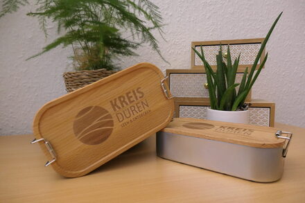 Klimaschutz war kaum praktischer. Wer eine handliche Brotdose des Kreises Düren gegen eine Spende von 5 Euro erhält, forstet gleichzeitig den Wald im Kreis Düren auf. Eine Brotdose entspricht nämlich einem neuen Baum, der mit hoher Wahrscheinlichkeit im Hürtgenwald gepflanzt wird. Dort hat der Borkenkäfer besonders viele Schäden angerichtet, was den Bestand anfällig für Wind, Wetter und Klimaextreme macht.