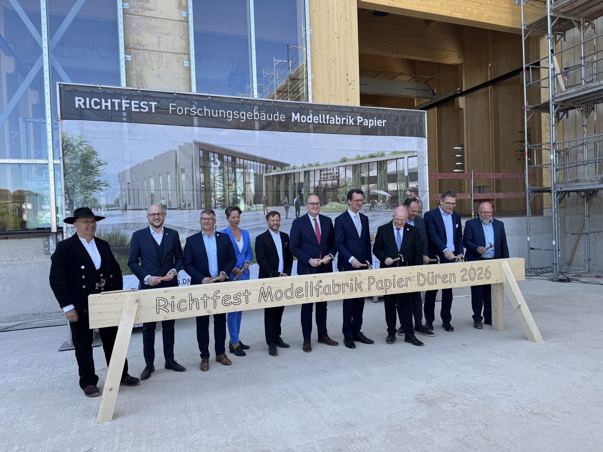 Und Landrat Dr. Ralf Nolten sagte: „Hier sehen wir Zukunft in allen Bereichen.“ Er betonte, dass nachhaltig gebaut und wirtschaftlich gedacht werde – und dass die Forschung schnell in der Industrie Anwendung finden soll. Das Thema Papier habe im Kreis Düren Tradition und Zukunft und spiegele sich auch im Kreiswappen wider. Ein Tag voller Aufbruchstimmung – und ein starkes Zeichen dafür, wie Innovation, Wissenschaft und Region gemeinsam Zukunft gestalten.