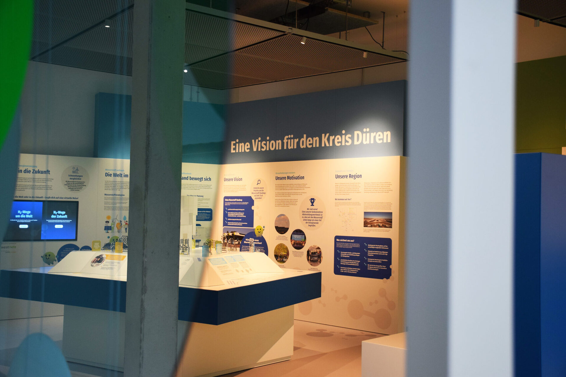 Mit der neuen interaktiven Dauerausstellung nimmt der Kreis Düren die Besucherinnen und Besucher mit auf eine Reise durch die Welt des Wasserstoffs (H2). Verständlich, abwechslungsreich und vor allem aus lokaler Sicht wird dieses für den Kreis Düren wichtige Zukunftsthema erklärt.
