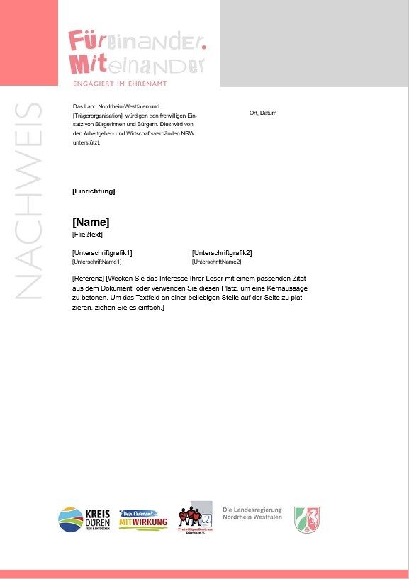 Weitere Informationen finden Sie unter www.engagiert-in-nrw.de/engagementnachweis (Öffnet in einem neuen Tab)