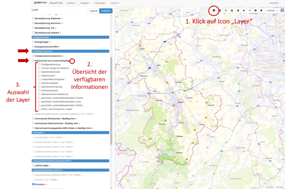 Das Geoinformationsportal des Kreis Düren nennt sich "inkasPortal" und ist eine digitale Kartenanwendung.