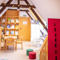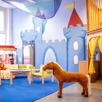 Das Familienzentrum zeichnet sich durch seine großzügigen und hellen Räume aus, die sich auf 2 Ebenen befinden. Bereits im Eingangsbereich werden Sie im Elterncafe freundlich empfangen. Hier finden sich wichtige Informationen, aktuelle Kursanmeldelisten des Familienzentrums, sowie das Büro, indem Sie mit all Ihren Anliegen herzlich willkommen sind. Der breite Flur lädt nicht nur in Richtung Turnraum zur Bewegung und gemeinsamen Spiel ein. Er wird als zusätzlicher Raum intensiv von den Kindern genutzt. Die angrenzenden Gruppenräume sind individuell an die Bedürfnisse der Kinder angepasst. Diese werden aktiv in die Raumgestaltung einbezogen und ihre Interessen werden situationsorientiert aufgegriffen. Jede Gruppe verfügt über zwei geräumige Nebenräume, die mehrzweckmäßig genutzt werden können. Ein eigener Waschraum und ein separater Wickelraum mit Duschvorrichtung, sowie ein gemütlicher Schlafraum für die Kleinsten dürfen nicht fehlen.