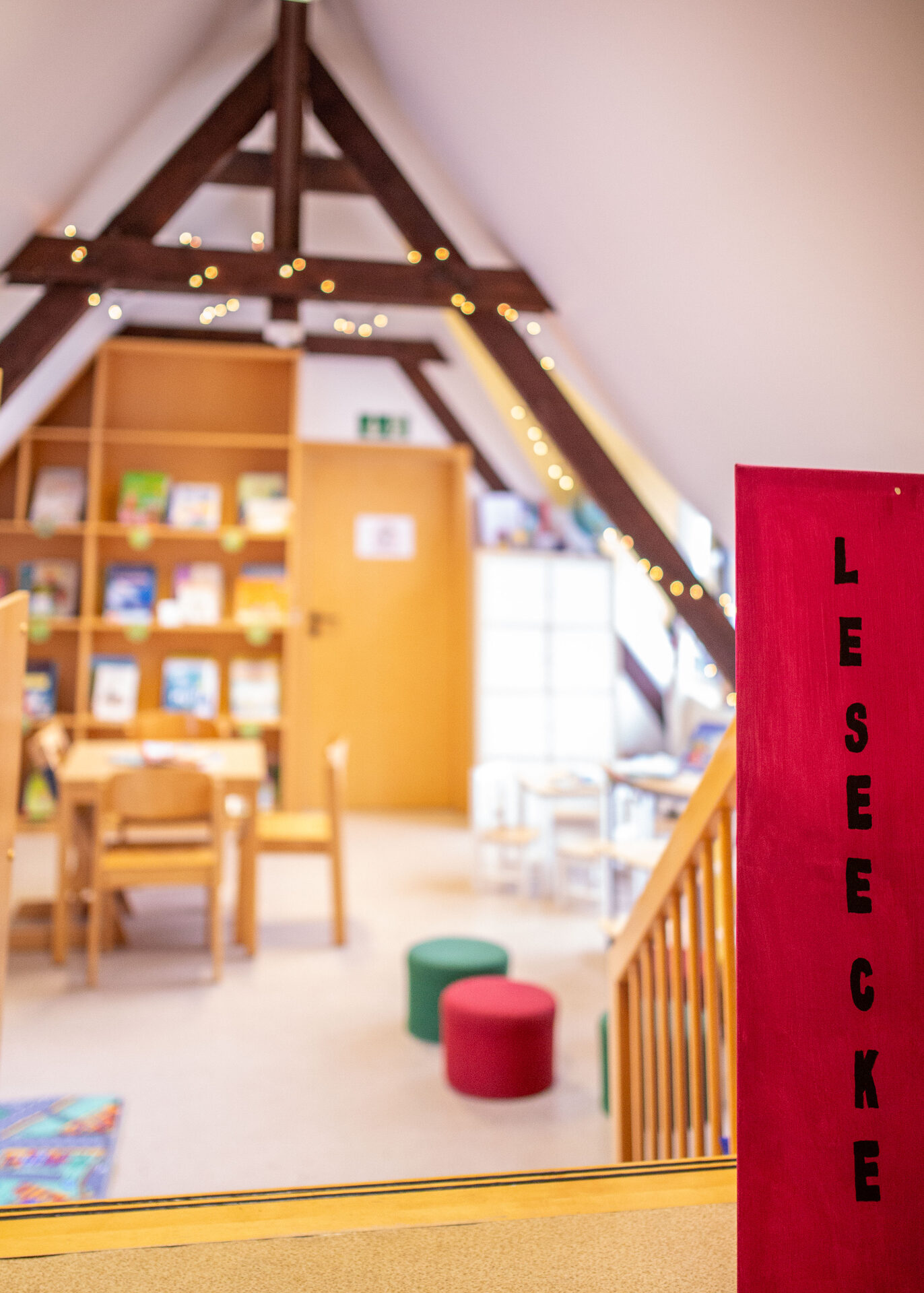 In den Gruppenräumen legen wir viel Wert auf Freiflächen, die zum kreativen Spiel auf dem Boden einladen und im wahrsten Sinne Raum zur Entfaltung bieten. Ein geselliger Frühstückstisch bildet einen wichtigen Anlaufpunkt für die Kinder. Hier wird in aller Ruhe gemeinsam gegessen, erzählt und Eigenständigkeit geübt.