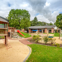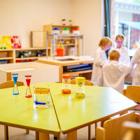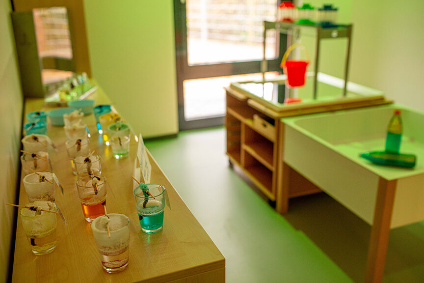 Seit Juli 2022 ist die Kita als Forscherkita zertifiziert. Die natürliche Neugier der Kinder nutzend, werden an ihre situativen Interessen angepasste Experimente spielerisch angeboten. Tägliche Bewegung an der frischen Luft gehört ebenfalls zum Programm. Im eigenen Außengelände, aber auch bei ausgedehnten Spaziergängen, gibt es verschiedene Möglichkeiten, die nähere Umgebung umfassend wahrzunehmen und interessante Projekte im Dorf zu begleiten. Die Kooperation mit einer Tagespflegeeinrichtung für Senioren bringt den Kindern einen generationsübergreifenden Alltag näher und ermöglicht Spiel- und Aktionstage für Jung und Alt.