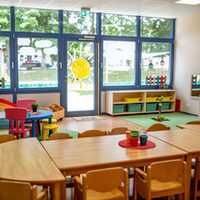 Die 6-gruppige Kindertageseinrichtung liegt im Nordosten der Stadt Jülich und ist in ca. 15 Gehminuten vom Stadtzentrum erreichbar. Es werden insgesamt 104 Kinder im Alter zwischen 4 Monaten und 6 Jahren betreut.