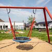 Das Außengelände ist sehr groß und ist mit vielen feststehenden und mobilen Spielmöglichkeiten versehen. Sowohl Rasen- wie auch Hartfläche werden täglich von allen Kindern genutzt. Auf der Wiese befindet sich eine größere Rutsch- und Kletteranlage, ein Spielgerät für U3-Kinder, eine große und eine kleine Nestschaukel, eine Wippe, ein Materialhaus und eine Bobbycarstraße. In den wärmeren Monaten holen wir viele Spielsachen aus unserem Materialhaus. Ein Piraten-Wasserschiff, Matsch- und Sandtische, verschiedene Fahrmöglichkeiten, Sandspielsachen u.v.m.