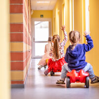 Weitere Schwerpunkte sind Bewegung und Ernährung. Wir sind anerkannter Bewegungskindergarten und bieten den Kindern täglich viel Raum für Bewegung.