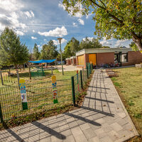 Unsere Einrichtung verfügt über ein Außengelände mit Bäumen, Sträuchern und Weiden. Auf unseren verschiedenen Rasenflächen befinden sich 2 Gartenhochbeete für die Kinder, 2 Nestschaukeln, 1 Hubbelrutschbahn und mehrere Kletterelemente für Kinder ab 2 Jahren. Unsere Holzhäuser und das Weidenhaus laden die Kinder zum Verstecken und Verweilen ein, gerne werden sie auch für Rollenspiele genutzt. Im Sandkasten und mit verschiedenen Materialien können die Kinder kreativ werden. Die zahlreichen, unterschiedlichen Fahrzeuge kommen auf den gepflasterten Wegen zum Einsatz.