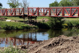 Landrat Wolfgang Spelthahn sprach den Teilnehmern des Ortstermins aus dem Herzen: „Die neue Brücke ist auch ein Symbol für die Region, weil sie Orte und damit Menschen verbindet. Sie ist gleichzeitig aber auch ein bedeutendes Signal für die Industrie und unterstreicht, wie wichtig uns im Kreis Düren eine gute Infrastruktur ist." Die laufende Baumaßnahme ist der letzte von vier Abschnitten und kostet allein rund drei Millionen Euro. Betroffen ist der Bereich zwischen der Einmündung der Peterstraße und der B56 auf Niederzierer Gemeindegebiet. Dort, auf dem rechten Rurufer, wird die Straße südwärts in