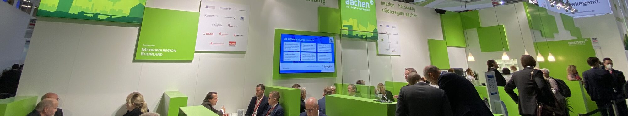 Auf dem Workshop des euregionalen Standes "Aachen 1a - drei Länder, ein Standort" sprach der Landrat über die Wachstums- und Wasserstoff-Offensive des Kreises Düren sowie seine Klimaneutralität bis 2035.