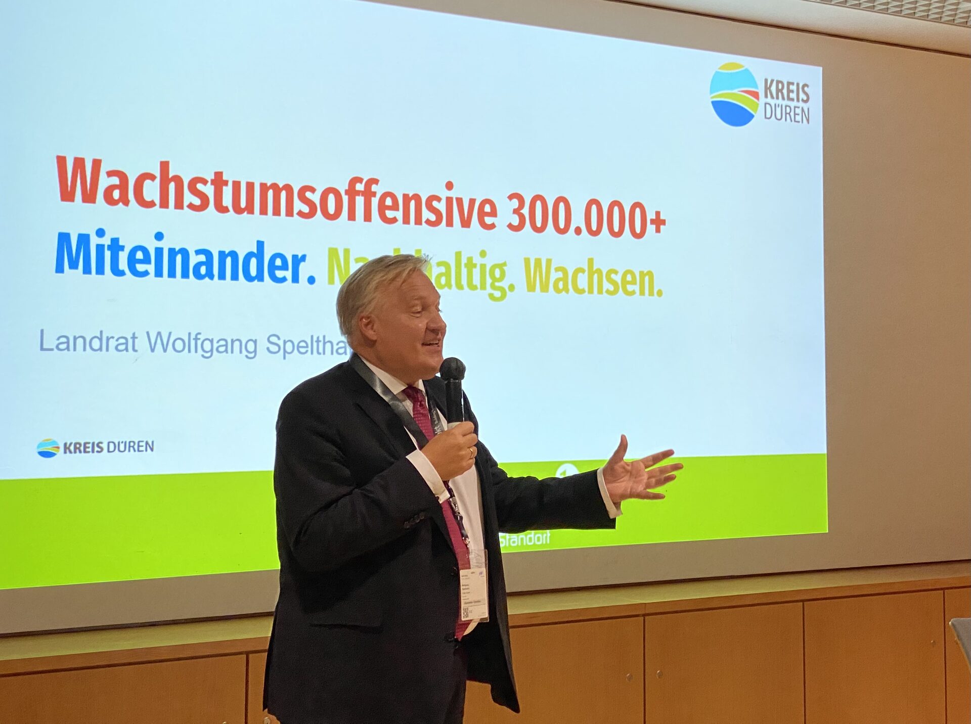 Landrat Wolfgang Spelthahn hat auf der Expo in München, Europas größter Immobilienmesse, die Zukunft des Kreises Düren skizziert.