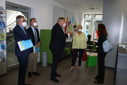 Die Ministerin besuchte den Kreis Düren aus gutem Grund: Von 2016 bis 2020 beteiligte sich der Kreis am bundesweiten Programm "Demografiewerkstatt Kommunen", das seit diesem Jahr seine Fortsetzung und Weiterentwicklung in der "Zukunftswerkstatt Kommunen" erfährt. "Wir freuen uns sehr, dass sie sich über unsere Projekte im Kreis Düren informieren", sagte Landrat Wolfgang Spelthahn und betonte, dass der Kreis Düren alle Generationen in den Blick nehme und fördere. So seien beispielsweise die Kita-Gebühren im Kreis schon lange weitgehend abgeschafft. Zudem würden mit den 15 Kommunen des Kreisgebietes Konzepte für die Offene Ganztagsgrundschule weiterentwickelt. Beides sei enorm wichtig, da der Kreis eine Wachstumsoffensive verfolge und bis 2025 rund 30.000 neue Bürgerinnen und Bürger gewinnen möchte. "Es ist sehr lobenswert, dass sie sich frühzeitig um die Rahmenbedingungen für den Zuzug kümmern", lobte Ministerin Lambrecht. Dies beobachte sie nicht in allem Kommunen in dieser Art.