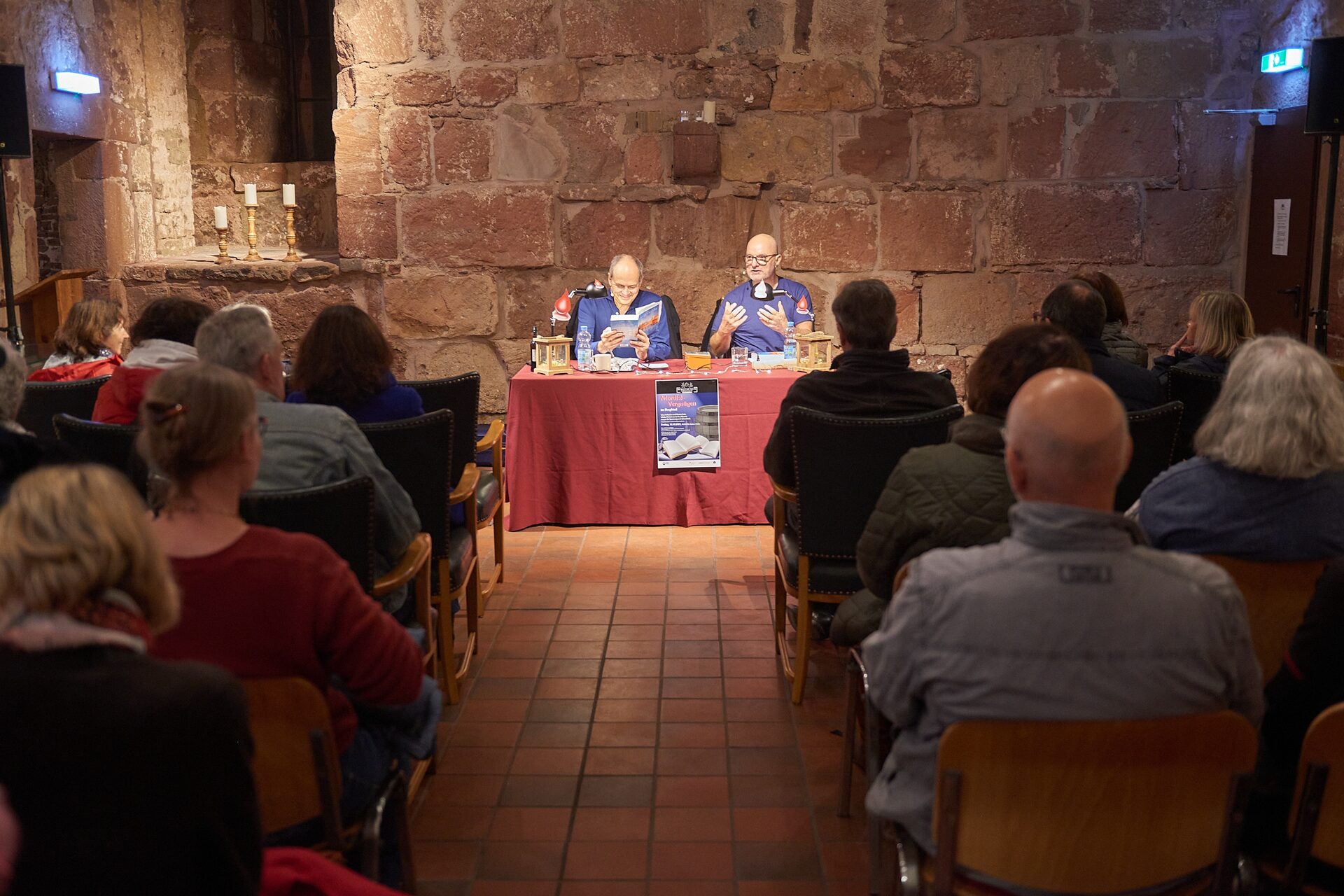 Zwei Stockwerke tiefer konnten die Besucher und Besucherinnen ins Berlin der 70er Jahre eintauchen. Uwe Wilhelm und Martin Lutz spickten ihren Krimi „Teufelsberg“ mit interessanten, geschichtlichen Anekdoten und verteilten als Anschauungsmaterial sogar angeblich echte „Hasch-Kekse“ aus dem Jahr 1969. Die beiden Journalisten und Drehbuchautoren verstanden es hervorragend historische Fakten, Fiktion und eine große Portion Humor in einer großartigen Mischung zu präsentieren.