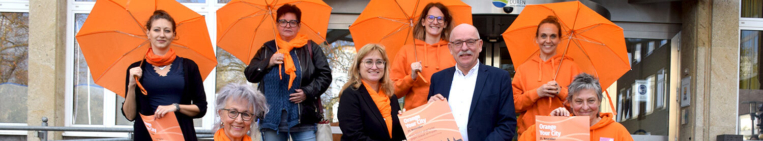 Der weltweite Aktionstag "Orange your City" soll auf das Thema Gewalt an Frauen aufmerksam machen, orange ist die Kampagnenfarbe der UN-Women (englisch United Nations Entity for Gender Equality and the Empowerment of Women, zu Deutsch: „Einheit der Vereinten Nationen für Gleichstellung und Ermächtigung der Frauen) und dient als weltweit einheitliches Symbol. Neben einigen Behörden nehmen auch andere Beratungsstellen, Firmen, Einkaufsmärkte, Einzelhändler, Krankenhäuser und Kirchengemeinden an der Aktion teil. Zudem sind Interessierte aufgerufen, sich mit kleinen Farbakzenten in orange und kreativen Lösungen an der Aktion zu beteiligen. "Interessierte Bürgerinnen und Bürger können uns bei der Aktion unterstützen und mit Hilfe von orangefarbenem Transparentpapier ihre Fenster zu Hause bekleben und anstrahlen", sagt Andrea Kenter, Gleichstellungsbeauftragte des Kreises Düren. Das Papier gibt es kostenlos an den Infotheken der Rathäuser in Jülich und Linnich und im Gleichstellungsbüro der Stadt Düren, Weierstraße 6. "Wenn viele Bürgerinnen und Bürger die Aktion unterstützen, schaffen wir auch eine große Aufmerksamkeit für dieses wichtige Thema", sagt Peter Kaptain, Allgemeiner Vertreter des Landrats des Kreises Düren.