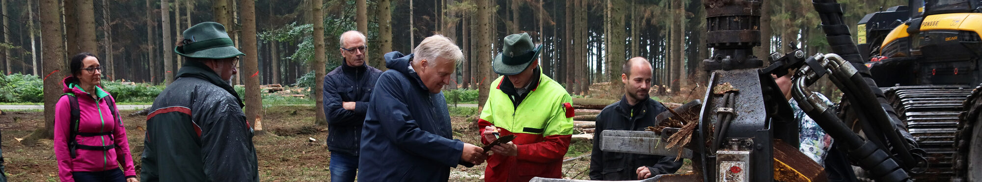 Auch wenn es in diesem Sommer häufiger geregnet hat, schadet der Borkenkäfer den Bäumen. Das liegt auch daran, dass die vergangenen drei Dürrejahre immer noch ihre Wirkung zeigen. Landrat Wolfgang Spelthahn erfährt von Förster van Elsbergen, dass ein weiteres Waldsterben nur einzudämmen sei, wenn die Klimaerwärmung gestoppt würde. Regionalforstamtsleiter Robert Jansen betont, dass das seit Jahren zu beobachtende Fichtensterben auch erhebliche finanzielle Folgen habe. Die gerodeten Bereiche müssen in zwei Jahren wieder aufgeforstet werden.
