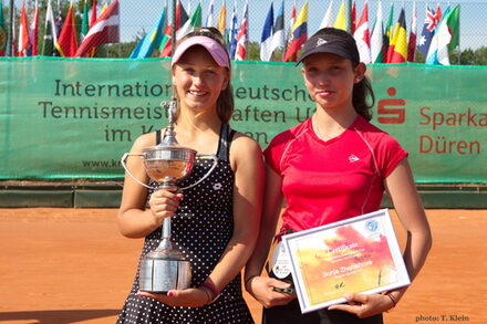 Hervorzuheben ist die Leistung von Sonja Zhenikhova vom Tennisclub Blau-Gold Steglitz. Als amtierende Deutsche Meisterin mit einer Wildcard ins Hauptfeld gekommen, trat sie über die gesamte Woche überzeugend auf. Die Berlinerin blieb bis zum Finale ohne Satzverlust, musste nur einmal in den Tiebreak. Auf dem Weg schlug sie unter anderem die an zwei gesetzte Rumänin Alexia Ioana Tatu, die im Juni erstmals U14-Champion in Wimbledon wurde. Im Endspiel bekam sie es mit der Tschechin Julie Pastikova zu tun. Beide Spielerinnen zeigten hochklassiges Tennis mit viel Tempo und langen Ballwechseln. Trotz der Aufholjagd im zweiten Satz, musste sich Zhenikhova am Ende mit 3:6, 4:6 einer souveränen und nervenstarken Gegnerin geschlagen geben.