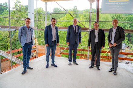 Der Aufsichtsrat der Freizeitbad Kreuzau GmbH und dessen Vorsitzender Landrat Wolfgang Spelthahn haben sich jetzt vor Ort gemeinsam mit Geschäftsführer Joachim Deutz und Betriebsleiter Julian Teubler ein Bild vom Baufortschritt der einzigartigen Turmsauna gemacht. Landrat Wolfgang Spelthahn ist überzeugt von dem Konzept: „Die Turmsauna als touristisches Highlight wird nicht nur Ruhesuchende aus dem Kreis Düren, sondern auch aus den angrenzenden Bundesländern anziehen.“