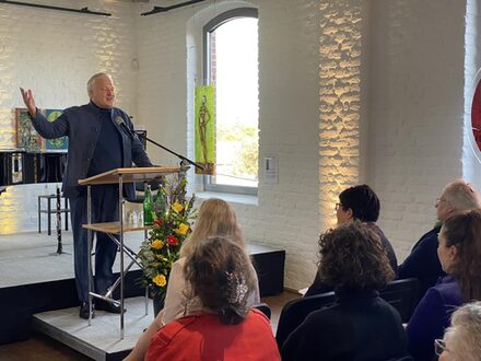 Marion Schunck-Zenker, Bürgermeisterin Linnichs, Sabine Verheyen, Schirmherrin und Mitglied des EU-Parlaments, hoben die Beudetung der Ausstellung und der Kultur hervor. Anna Polke, Tochter des Künstlers, gab einen Einblick in das Schaffen und den Werdegang ihres Vaters. Prof. Barbara Schock-Werner berichtete, wie Richter das Fenster im Dom gestaltete. „Wir danken der Museumsleiterin Luzia Schlösser und allen Beteiligten für diese wunderbare Ausstellung“, betont der Landrat. Sie gab einen umfassenden Einblick in die Kunstwerke aller Rebellen und Rebellinnen.