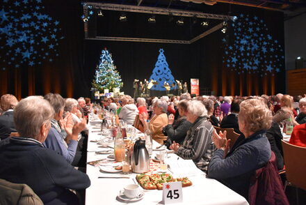 Die Gäste nahmen an festlich gedeckten und weihnachtlich geschmückten Tafeln Platz, an denen Kaffee, Kuchen und herzhafte Schnittchen gereicht wurden. Ein abwechslungsreiches Bühnenprogramm rundete die ausgelassene Stimmung ab. "Ich freue mich sehr, dass wir heute zur Jubiläumsfeier mit bester Laune zusammengekommen sind. So können wir gemeinsam Kraft für die Weihnachtszeit tanken, einige Stunden in netter Gesellschaft verbringen und ein tolles Programm genießen", sagte Landrat Wolfgang Spelthahn bei der Begrüßung der Seniorinnen und Senioren.