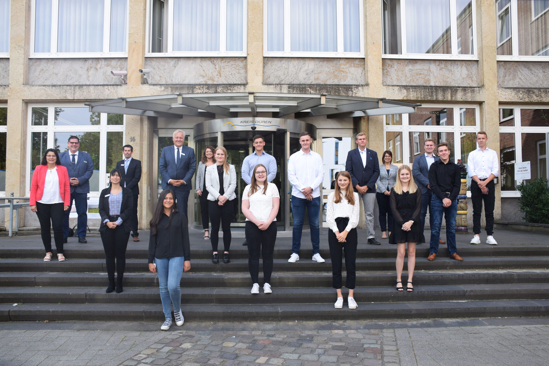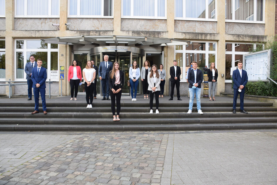 Nach der offiziellen Begrüßung gab es dann noch in Kleingruppen eine Rallye durch die Verwaltungsgebäude, ein erstes Kennenlernen der neuen Kolleginnen und Kollegen sowie ein Frühstück mit der Jugend- und Auszubildendenvertretung. Rund die Hälfte der Auszubildenden startet im August dieses Jahres, die andere Hälfte wird zum 1. September das Duale Studium antreten. "Wir wünschen allen einen guten Start bei uns", sagt Landrat Wolfgang Spelthahn.