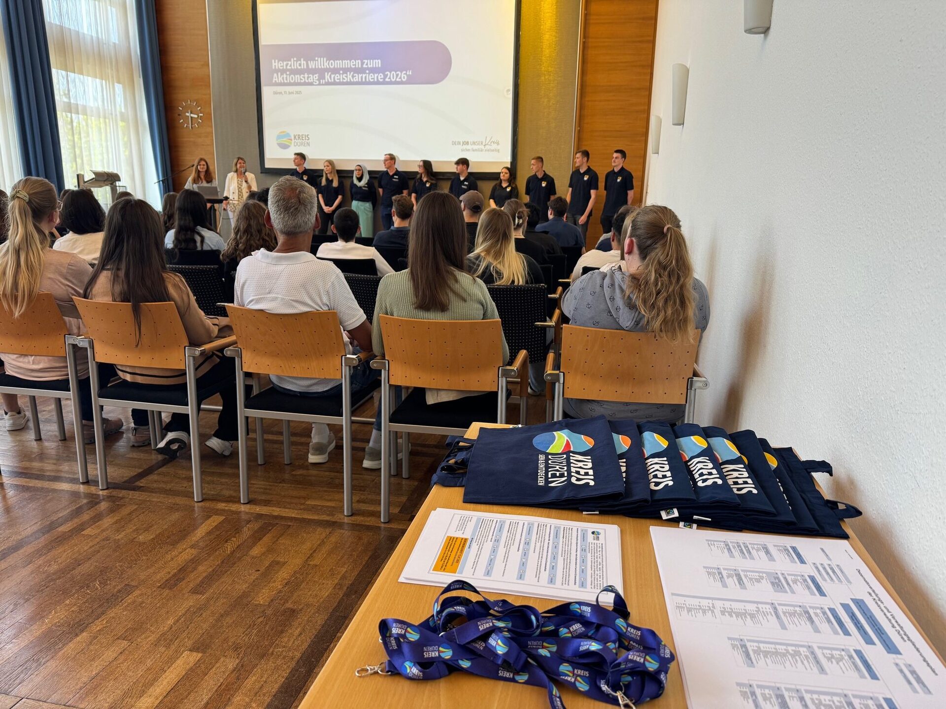 Die Teilnehmerinnen und Teilnehmer konnten viele Fragen stellen und in persönlichen Gesprächen mit den aktuellen Nachwuchskräften einen authentischen Eindruck vom Arbeitsumfeld gewinnen. Der Aktionstag "KreisKarriere 2026" vermittelte außerdem viele Tipps zum Bewerbungsverfahren, Assessmentcenter und Vorstellungsgespräch.
