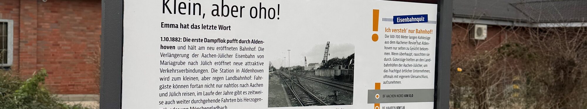 Die zwei neuen Infotafeln in Aldenhoven und Jülich greifen die Geschichte der Bahnlinie auf, die von Industrialisierung, Fortschritt sowie Strukturwandel geprägt ist.