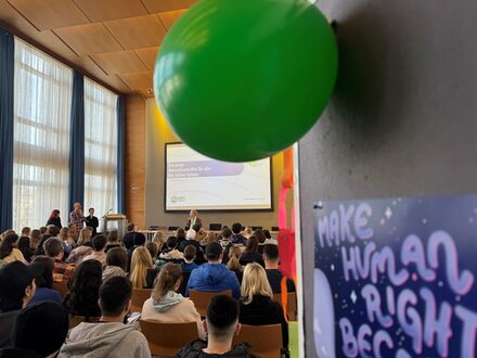Ziel war es, sich rund um die Themen Demokratie, Menschenrechte und Antidiskriminierung auszutauschen und erste Ideen und Projekte zu entwickeln. "Eine vielfältige Gesellschaft ist unsere Stärke. Wir alle müssen uns jeden Tag bemühen, genau dafür einzustehen, und dazu brauchen wir euch, die junge Generation", sagte Kreis-Dezernentin Sybille Haußmann zur Begrüßung der rund 70 anwesenden Jugendlichen aus neun teilnehmenden Schulen.