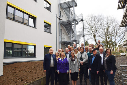 "Wir investieren in die Zukunft, in die Schülerinnen und Schüler, in die Region. Der Neubau symbolisiert dies. Im Rahmen des Strukturwandels setzen wir auf den Rohstoff Bildung. Sie ist ein hohes Gut und hier steckt viel Potenzial auch für die Unternehmen, die sich auf gut ausgebildete Mitarbeiterinnen und Mitarbeiter freuen können. Es erfüllt mich mit Stolz, dass wir heute offiziell diese Türen öffnen können", sagte Landrat Wolfgang Spelthahn zur Begrüßung der rund 40 Vertreterinnen und Vertretern aus Verwaltung, Politik, Schul- und Bauwesen. In dem neuen rund 15 Meter hohen Gebäude lernen derzeit neun Schulklassen des Wirtschaftsgymnasiums. Neun Klassenräume, zwei Beratungs- beziehungsweise Lehrräume sowie sechs sogenannte Differenzierungsräume verteilen sich auf drei Geschosse. Differenzierungsräume sind vielfältig nutzbare Räume für Besprechungen, Elterngespräche oder Unterricht.