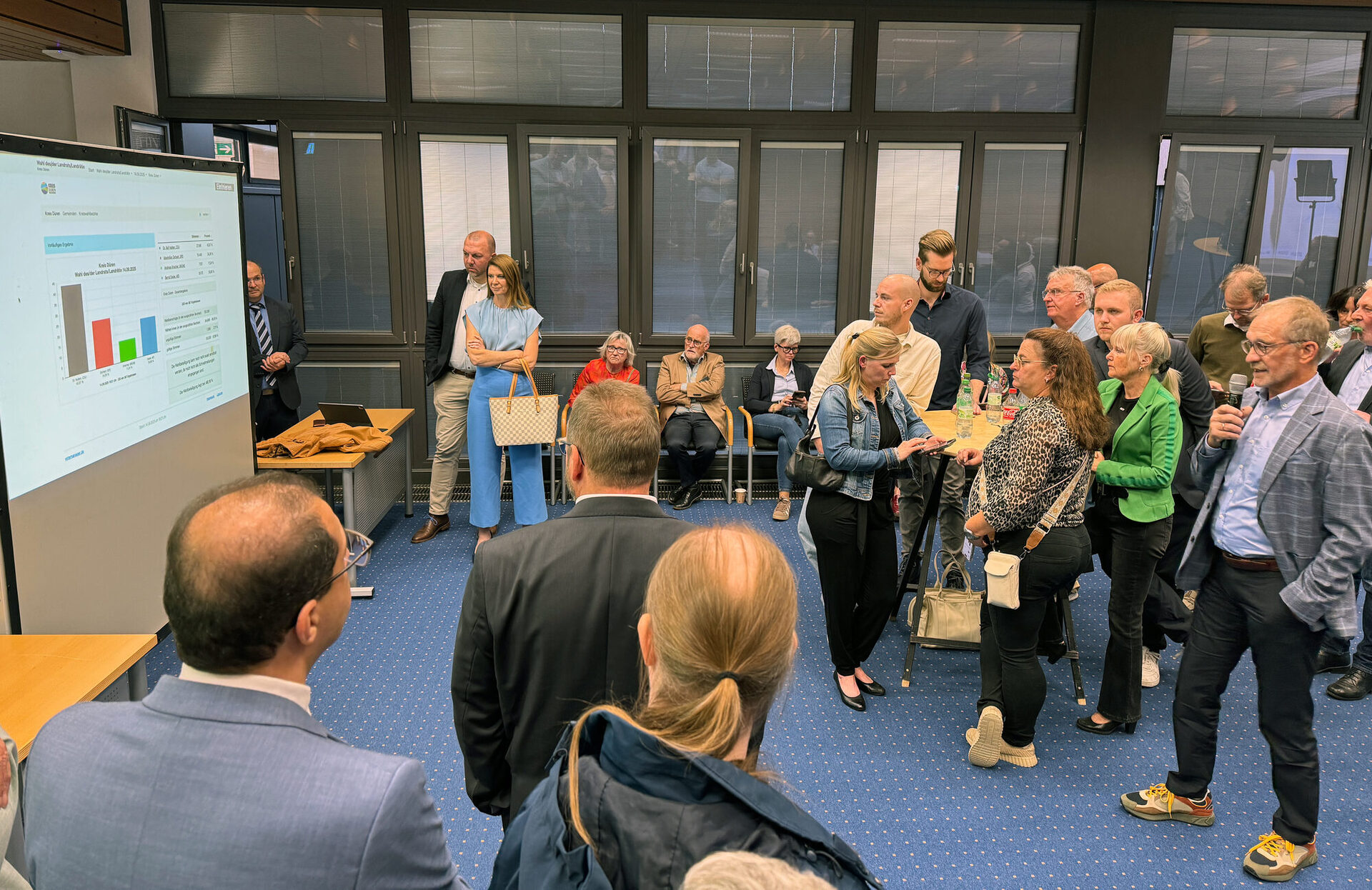 Die Ergebnisse wurden über den Abend im Wahl-Studio des Dürener Kreishauses von Wahlleiter Ferdinand Aßhoff und seinem Stellvertreter Mario Grau verkündet. Zahlreiche Gäste waren in die Kreisverwaltung gekommen, um das Geschehen zu verfolgen. Die Wahlbeteiligung lag bei 60,09 % (55,9 %).