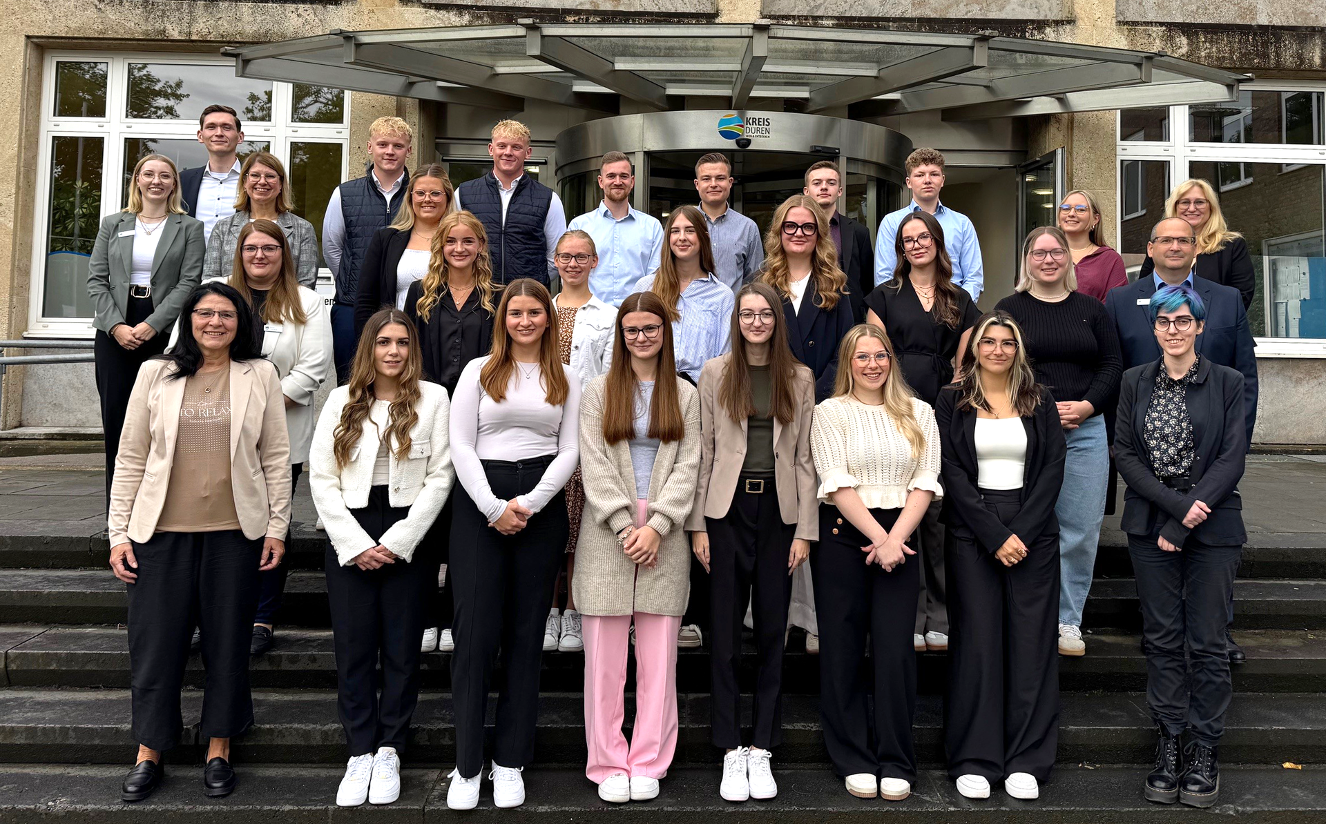 Jedes Jahr im August und September starten die jungen Menschen bei der Kreisverwaltung Düren mit der Ausbildung beziehungsweise dem Dualen Studium. Sie absolvieren beispielsweise die Ausbildung zum/zur Verwaltungsfachangestellten oder Kreissekretär/in, andere beginnen das Duale Studium zum/zur Kreisinspektor/in oder im Bereich Soziale Arbeit sowie Geoinformatik.