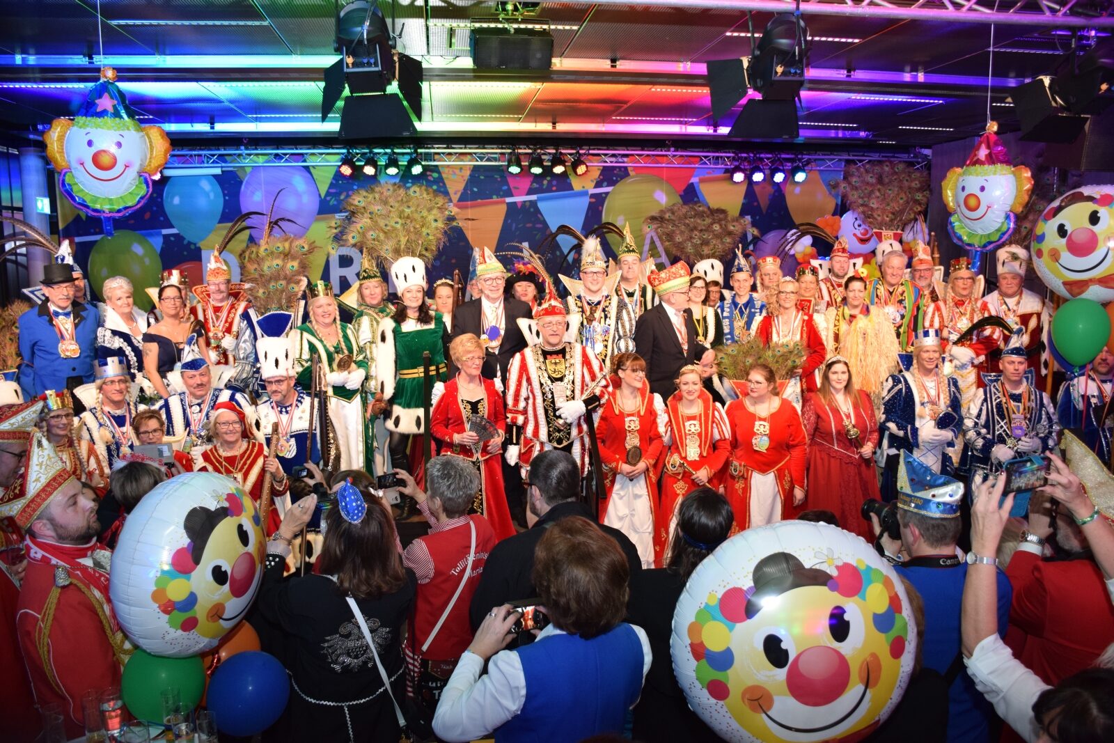 So viel jecke Prominenz kommt wohl selten unter einem Dach zusammen. Beim Närrischen Empfang des Kreises Düren allerdings gelingt das. Über 60 Karnevalsgesellschaften und damit rund 1000 Gäste fanden sich am Mittwochabend zum ersten Mal in der neuen Umgebung im Bismarckquartier ein. Bunt geschmückt wie eh und je und bestens versorgt, feierten sie gemeinsam zum Motto "Neuje Lück em Kreis Düre vun Hätze bejrööße em Karneval met Freud un Toleranz et Leeve versööße" und stimmten sich so schon einmal auf den Start in den Straßenkarneval ein.