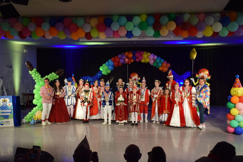 Unter dem Motto „De Rur erop on och eraaf – dreimol Kreis Düre Alaaf!“ leitete der Kreis Düren mit gut 1000 Gästen der rund 60 Karnevalsgesellschaften die kommenden Karnevalstage ein und stellte die Kinder- und Erwachsenentollitäten vor. Die Jugendgarde der KG Jonge vom Berg aus Merzenich sorgte mit einer hervorragenden Tanzeinlage für viel Applaus. Auch die Musik von „De Kötts“ und „FierOvend“ heizte die Stimmung an dem Abend vor Weiberfastnacht an.