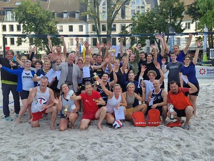 Die Freizeit- und Hobbymannschaften machten am Freitag, 23. August, den Anfang beim Beach-Volleyball-Wochenende und spielten das Feld schon ein. Es gab nicht nur guten Sport zu sehen, auch die traditionell kreativen Namen der Freizeitteams verdienen Aufmerksamkeit. Team "BeachSmasher" holte sich den Sieg im Finale gegen "Desperados" und damit den SWJ-Cup, also Stadtwerke Jülich-Cup. An dritter Stelle landete Team "Tequila", das von Anfang an beim Hobbyturnier dabei ist.