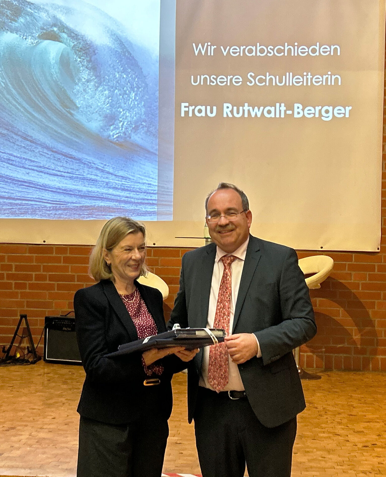 Die studierte Diplomwirtin aus Köln hat im März 2019 die Schulleitung übernommen, kurz vor der Coronapandemie mit Distanzunterricht und Abstandsregeln. „Auf Sie kann man sich verlassen. Ich danke Ihnen von Herzen für Ihr Engagement, Ihr hohes Verantwortungsbewusstsein und Ihr pragmatisches Handeln“, sagte Dorothea Scherer, zuständige Schuldezernentin der Bezirksregierung Köln. In Krisensituationen sei Kerstin Rutwalt-Berger eine wichtige und belastbare Instanz. 2022 gab es ein weiteres Ereignis, das so schnell nicht vergessen wird: Eine anonyme Drohung gegen die Schule; die einen Großeinsatz der Polizei zur Folge hatte. Zu Schaden kam dabei glücklicherweise niemand.