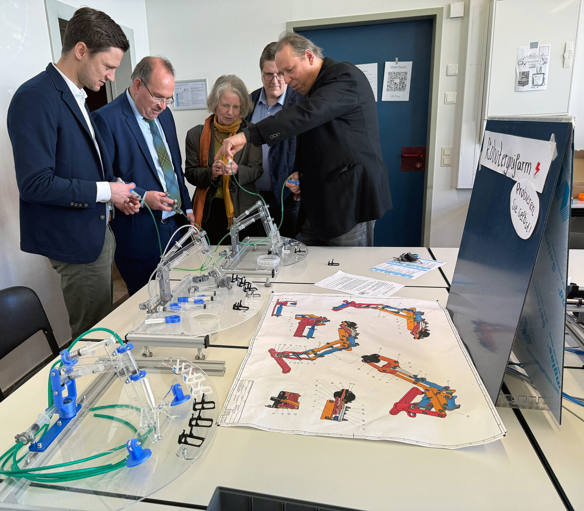 Entsprechend können an allen vier Schulen zahlreiche Abschlüsse gemacht werden (inklusive eines vollwertigen Abiturs). Am „Tag der Offenen Tür“ nutzten auch Landrat Dr. Ralf Nolten, Kreisdirektor Dr. Martin Stiller, die beim Kreis Düren für Bildung zuständige Dezernentin Sybille Haußmann, und Elisa Nierbeck, stellvertretende Leitern des Amtes für Schule und Bildung, die Gelegenheit, sich von den Angeboten des Berufskollegs in Jülich sowie des Berufskollegs Kaufmännische Schulen, des Berufskollegs für Technik und des Nelly Pütz-Berufskollegs (alle in Düren) zu überzeugen.